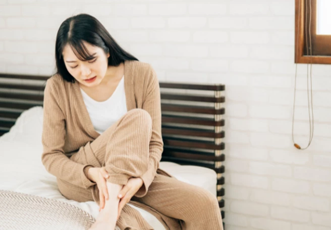| Rote oder braun pigmentierte Flecken an Füßen und Beinen | Wadenkrämpfe |