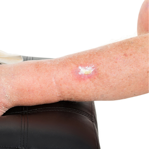 Ist die Haut auf Dauer mit Sauerstoff und Nährstoffen unterversorgt, breitet sich die Entzündung im Gewebe des Beins aus und es sterben zunehmend Zellen ab. Die Haut wird dünn und rissig. Häufig entstehen zuerst Ekzeme durch austretende Immunzellen und Entzündungsfaktoren in das Gewebe. In späteren, unbehandelten Verläufen, kann es durch zunehmend absterbenden Zellen zu einem Unterschenkelgeschwür, einem sogenannten „offenen Bein“ (Ulcus cruris venosum), kommen. Das offene Bein ist die schwerste Komplikation der chronischen Venenschwäche. Die Behandlung nimmt viel Zeit in Anspruch, ist medizinisch kompliziert und es entstehen bleibende, tiefe Narben.