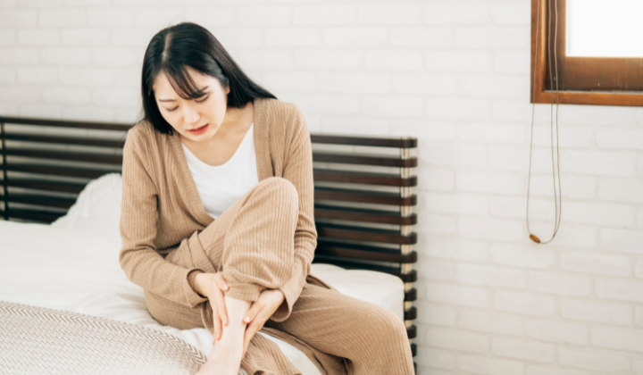 | Rote oder braun pigmentierte Flecken an Füßen und Beinen | Wadenkrämpfe |